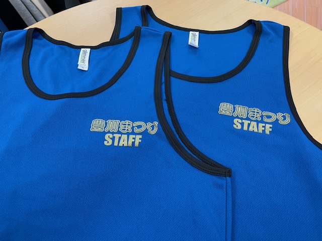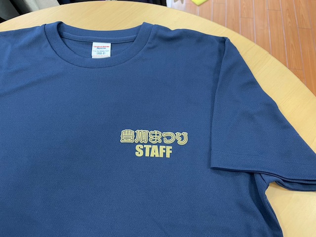 左胸には、シンプルな雰囲気で「豊川まつりSTAFF」